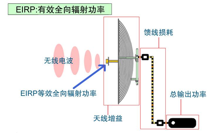 公式:EIRP = P * 10 log dBi/10  P: RF Power (w)  dBi: Antenna Gain