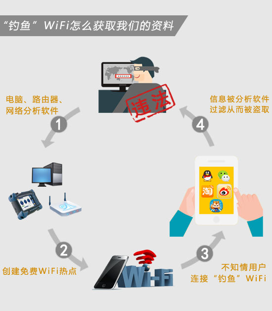 最近越来越多关于用户使用了“钓鱼”WIFI而被盗取各种密码、甚至是金钱的新闻。例如以下一个案例,某用户遭“钓鱼”两天时间发生69笔交易6万多块钱不翼而飞。不用怀疑这条新闻的真实性,因为这种新闻已经多到见怪不怪了,所以各位使用免费WIFI的用户最好记住这么一句话:不要在公用网络上使用一些重要的网络密码。